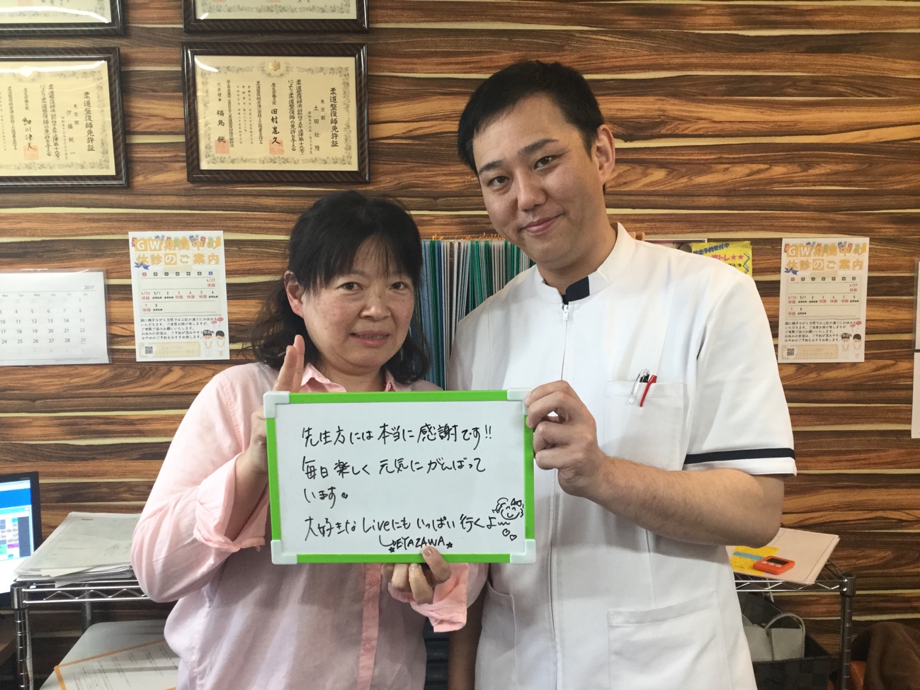 >日に日に体調も良くなり、痛みも確実になくなり身体が動くようになりました。心も痛みそうになった状態からこちらの先生方が救ってくれました。